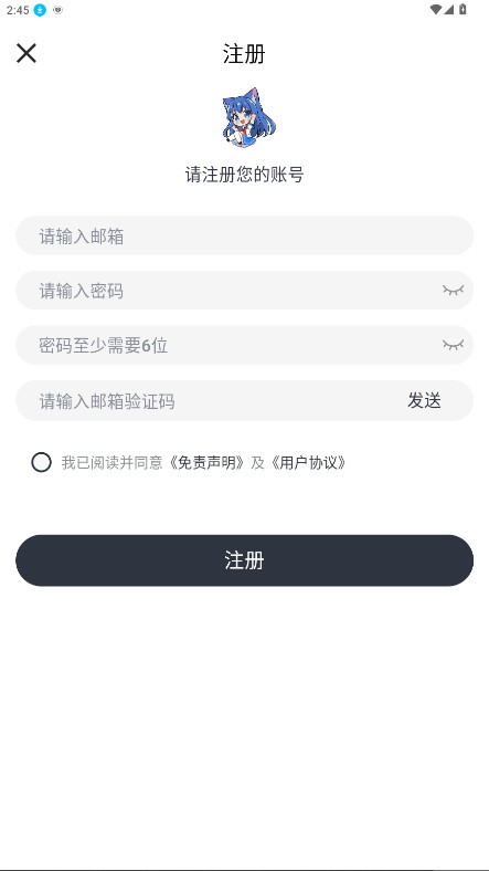 3、然后输入邮箱和密码即可注册