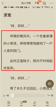 1、打开一本你想听的小说,进入阅读页面后,轻点屏幕中央区域(如下方红框所示位置),即可呼出功能菜单