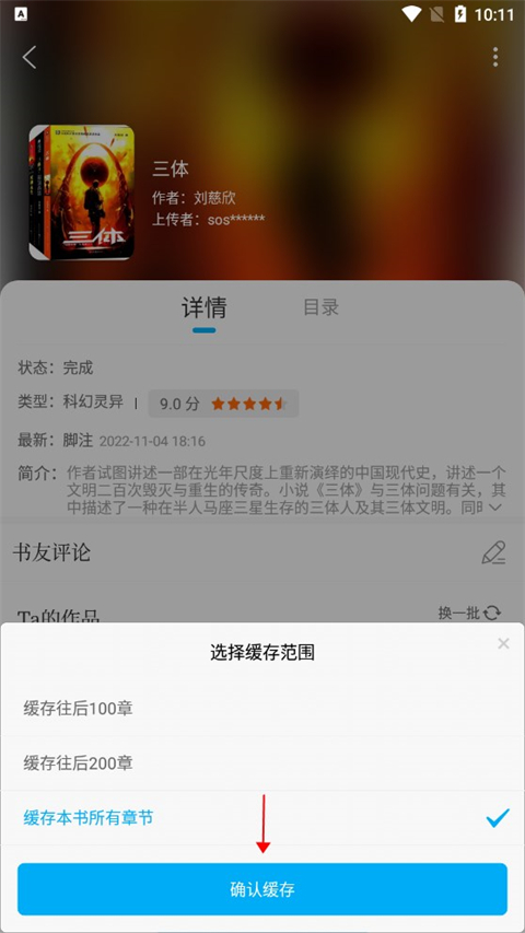 4、选择缓存本书所有章节,点击确认缓存即可。