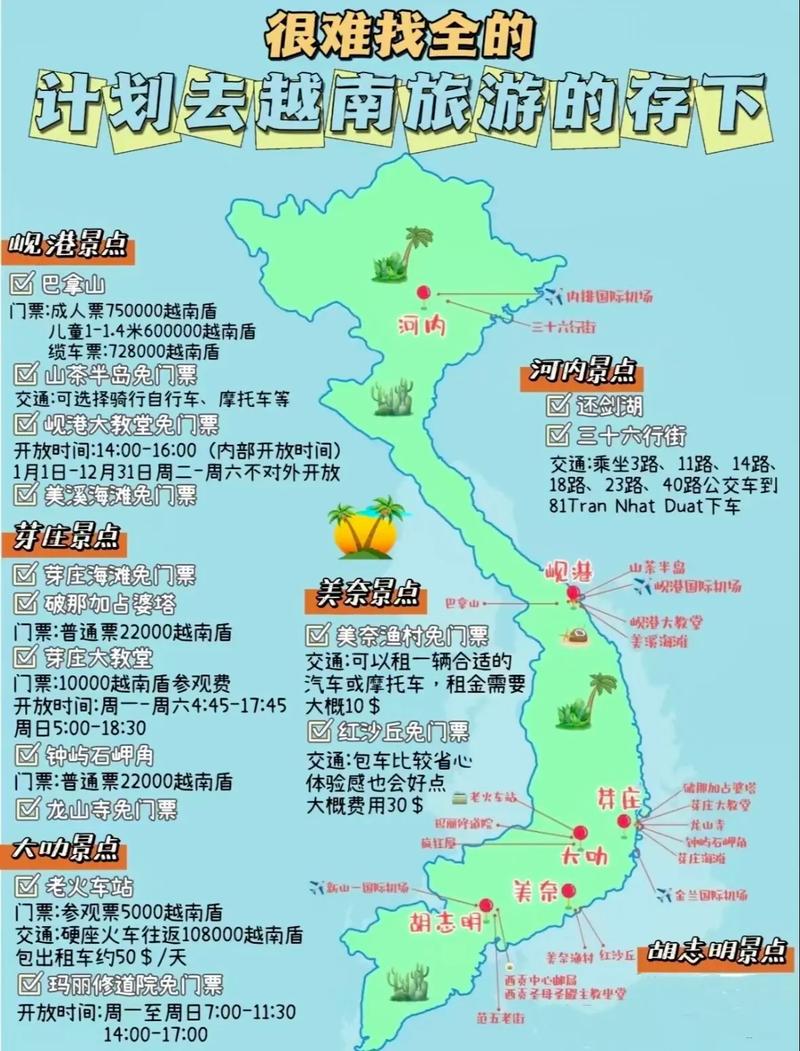 婆那加占婆塔(Po Nagar Cham Towers):这是一座位于芽庄以北的印度教风格建筑,建于公元7-12世纪,其独特的建筑风格和精美的雕刻都是一大看点。
