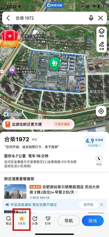 1.在高德地图上搜索你想要去的地方,然后点击左下角的五角星标记。
