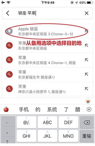 2、从自动弹出的建议列表中选取正确的地点,系统将立即在地图上标记其位置;