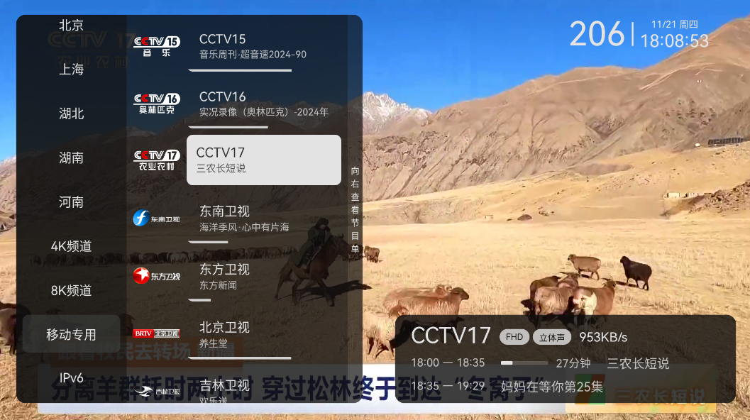 2、移动网络用户只需在“移动专用”分类下选择所需频道,所有主流节目均完整收录,流畅播放不延迟。