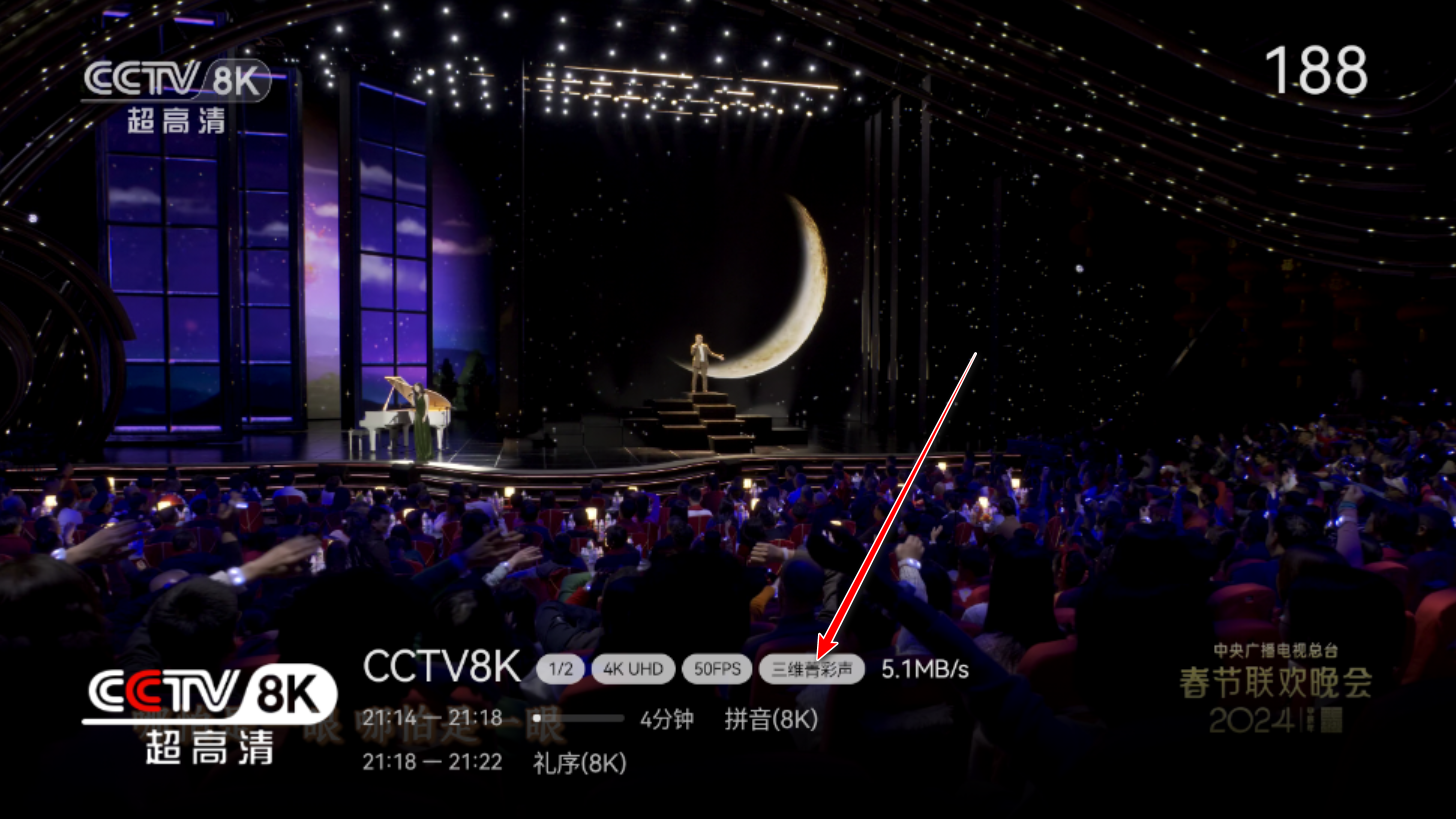 1、若在观看高分辨率4K或8K频道时出现无声情况,通常是因音频编码格式为av3a三维菁彩声所致。此时可双击屏幕或按遥控器菜单键唤出控制面板;