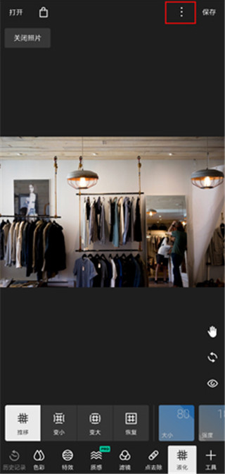 1、安装并打开本站提供的泼辣修图免费破解版应用,进入主界面后点击右上角的三个点图标;