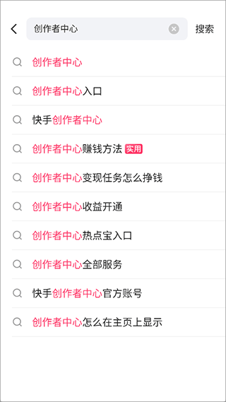 1、登录快手App后,在顶部搜索栏输入【创作者中心】进行查找