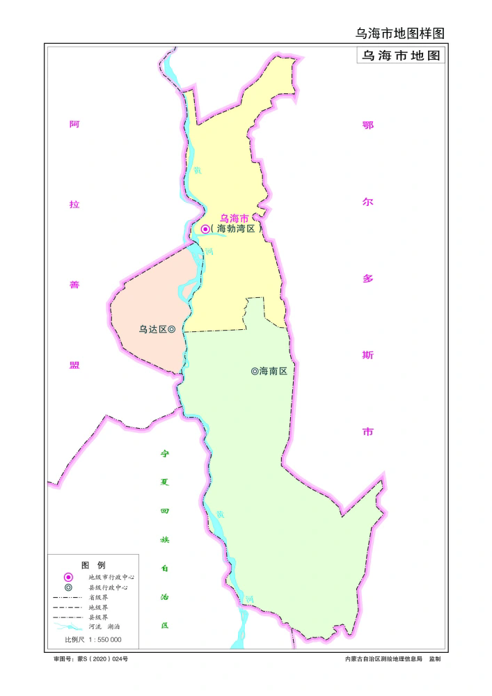海勃湾区:市政府所在地,总面积529平方公里,是政治、经济和文化中心,以“黄河明珠”“书法之城”著称45。