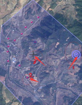 7、放大地图,用“1”和“2”进行规划,“3”用来标注