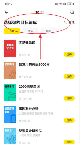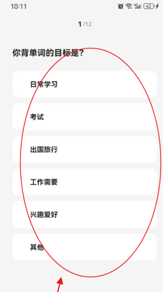 3、在这里您需要选择你背单词的目标,按照实际情况来选择,可以更好的制定计划。