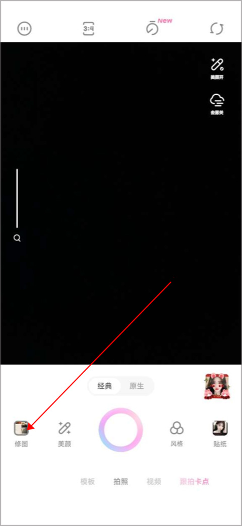 1、首先我们打开一甜相机,点击左下角的修图。