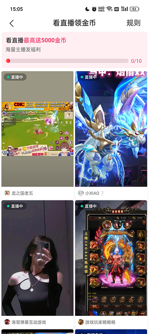 3、进入直播频道观看指定直播内容,单次可获得高达5000金币的奖励;