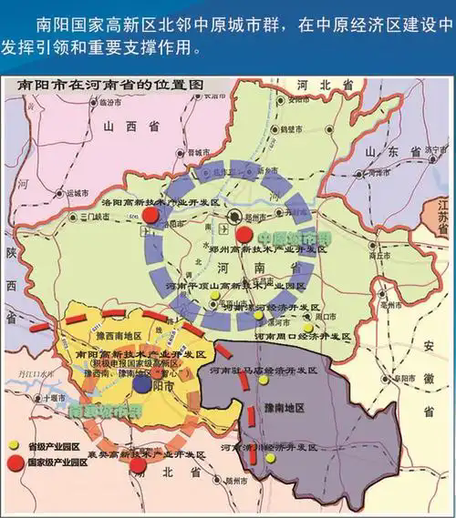 南阳高新技术产业开发区 [5]是1995年3月经河南省人民政府批准成立省级开发区,1996年元月正式运行,2005年12月通过国家发改委首批审核,2010年9月经国务院批准晋升为国家高新区。
