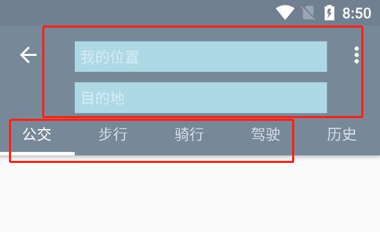 2、随后输入出发地和目的地,系统将自动提供公交、步行、骑行、驾车四种出行方案供选择;