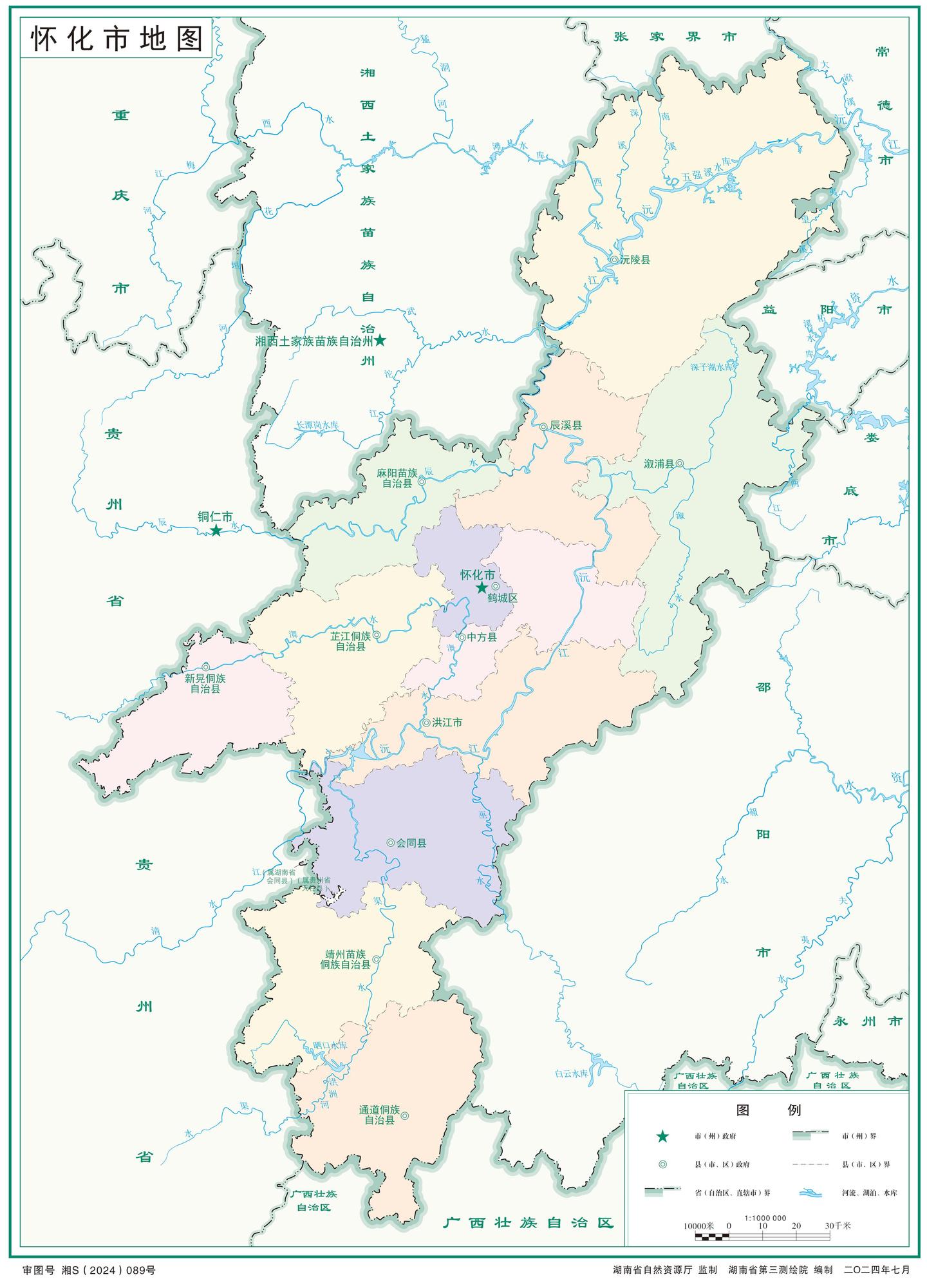 怀化市,别称“鹤城”,古称“鹤州”“五溪”,湖南省辖地级市, [1]位于湖南省西部偏南,处于武陵山脉和雪峰山脉之间,地处中亚热带川鄂湘黔气候区和江南气候区的过渡部位,境内四季分明,严寒酷暑期短,总面积27564平方千米。 [2-4]截至2025年3月,怀化市辖1个市辖区、10个县,代管1个县级市, [1] [92]截至2024年末,怀化市常住人口441.59万人。