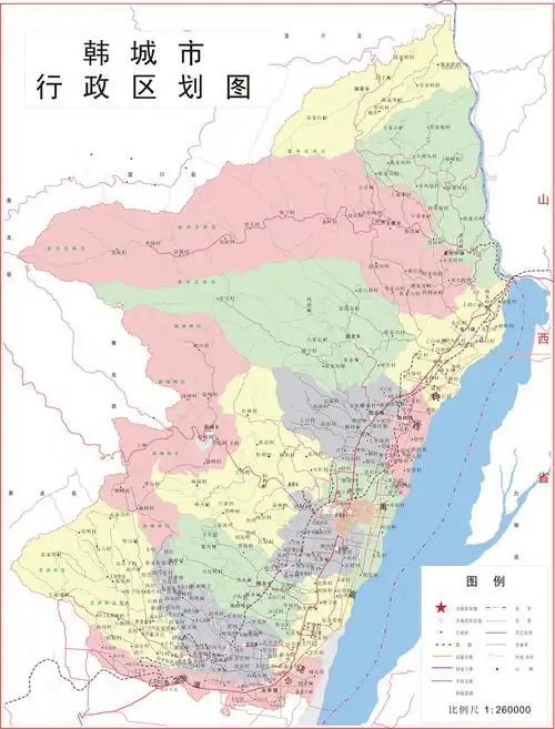韩城市,陕西省辖县级市,渭南市代管。位于陕西省东部黄河西岸,关中盆地东北隅,北依宜川,西邻黄龙,南接合阳,东隔黄河与山西省河津、乡宁、万荣等县市相望,距省会西安240余千米,总面积1621平方千米 [63]。截至2022年10月,韩城市下辖2个街道、6个镇 [53]。截至2022年末,韩城市户籍总人口39.0946万人。