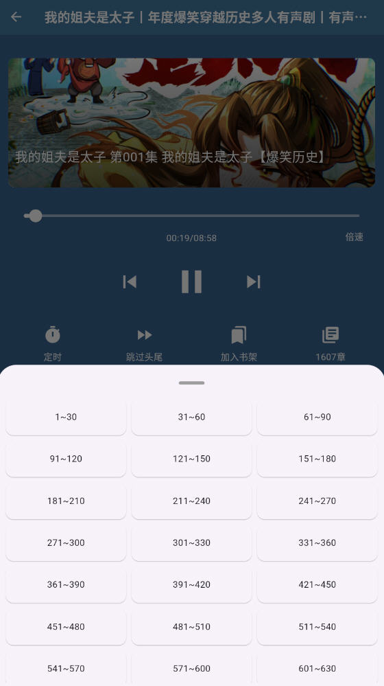 4、听到一半关掉也不怕,下次打开自动续播,无需手动找章节。