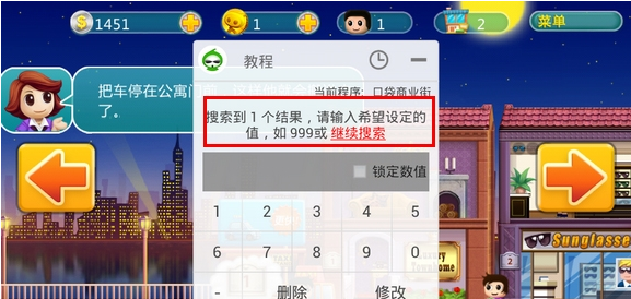 6、经过多次搜索(至少1次搜索)后,当查找到正确的内存地址时,界面出现如下提示,即可修改,然后输入你想要修改的数据即可修改成功!