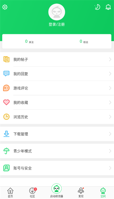设置里面是我们挑战各项参数的地方。如果想看自己的帖子和回复可以在空间当中寻找,还支持查看浏览的历史