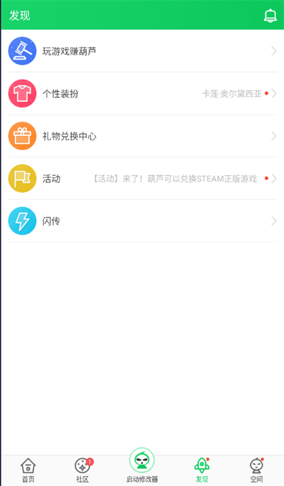 发现板块当中支持个性装扮、活动、闪传等等;