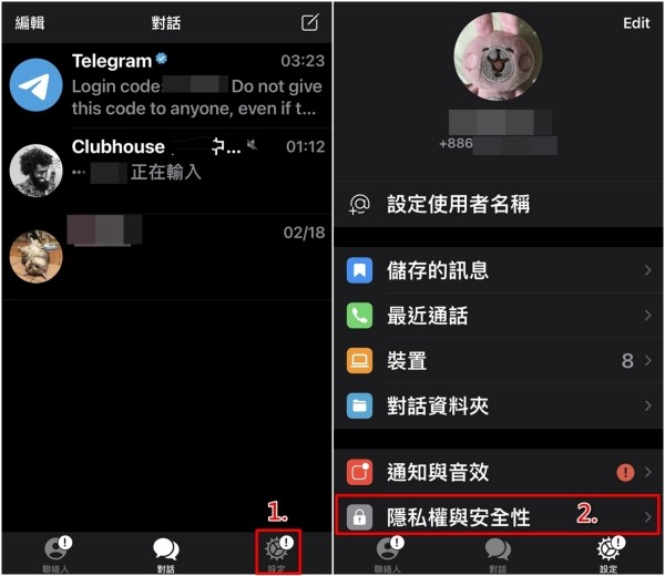 1、打开app,点击右下方的「设定」>「隐私权与安全性」。