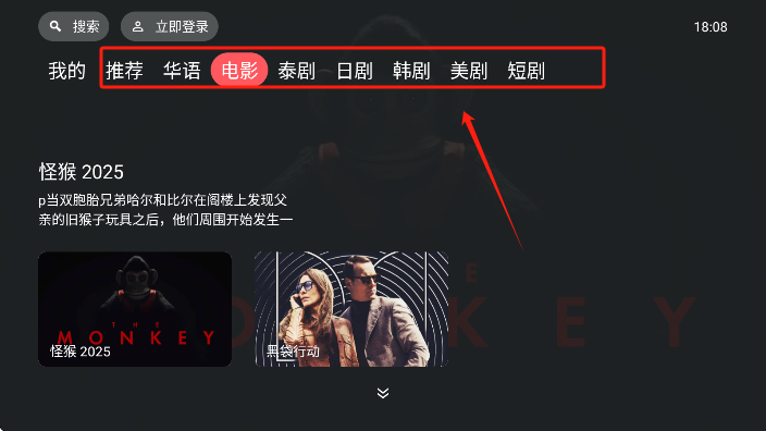 2、通过顶部的栏目可以对类型进行切换