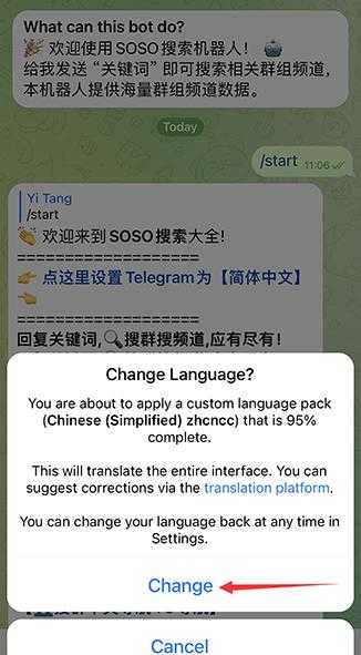 2、在搜索栏中输入【@zh_cn】,从结果中选择官方认证的简体中文语言频道。