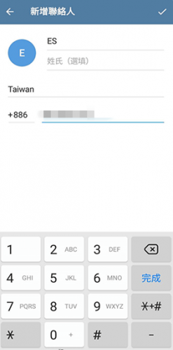 3、输入好友信息:依次选择好友所在国家、输入好友名称及手机号码,最后点击右上角的 “✓” 按钮。
