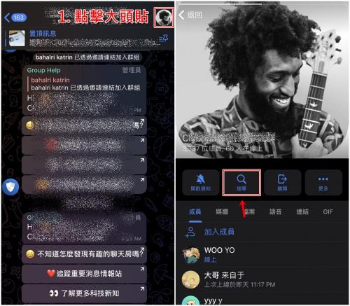 1、首先打开软件,点击你要搜索消息的群组频道,点击右上角的群组图示,点击搜搜功能。