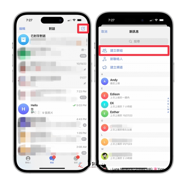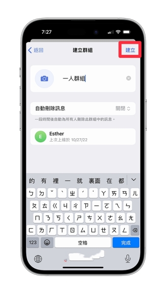 5、然后在最上方输入你的Telegreat一人群组名称,并点选「建立」。