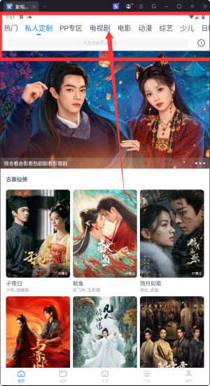 各大热门影视剧集,首页点击就能观看。