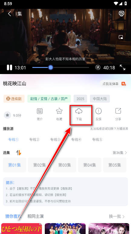 3.点击我们想要下载的集数即可。