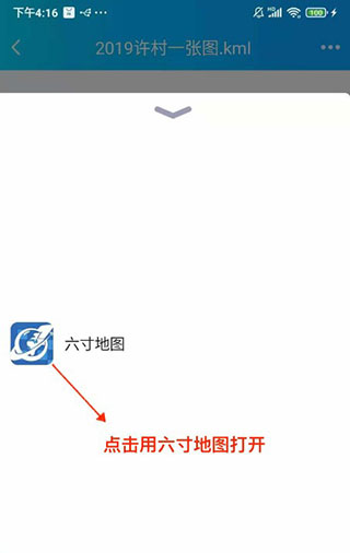 ② 通过QQ等社交应用接收KML文件,点击文件后选择“用六寸地图打开”: