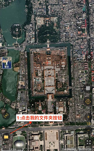 1、完成六寸地图下载安装并启动应用后,点击地图界面左下角的文件夹图标(如下图所示):
