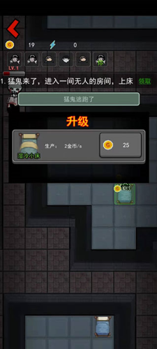 猛鬼宿舍无敌版内置mod菜单,在游戏中玩家需要控制小人在倒计时前进入房间,建造小床开始躺平发育,躺平时或不断的获取金币,使用金币升级床铺、大门和武器来抵抗猛鬼的攻击,只有玩家将猛鬼击败或是成功坚持到天亮就算成功。