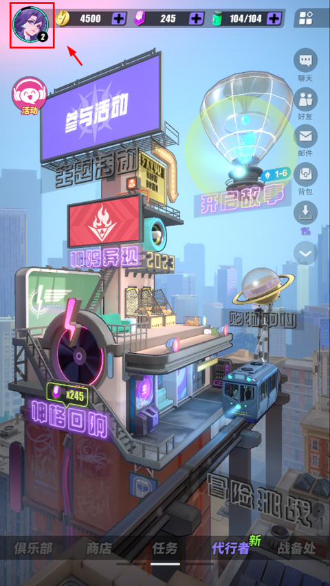 1、首先打开众神派对,进入游戏后,点击左上角头像按钮;