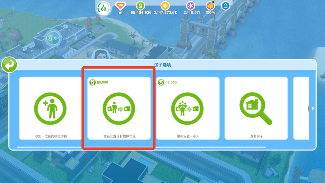 2、选择重新安置现有模拟市民,重新安置市民需要花费金钱。