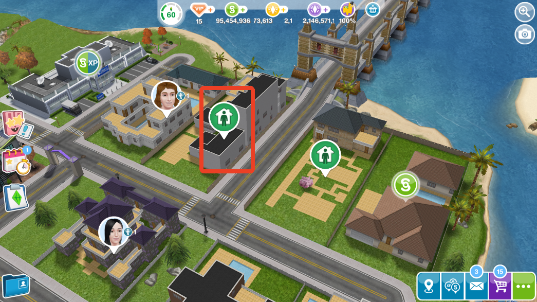 1、在地图里的房子上我们可以看到这种标志,有这种标志说明这栋房子没有市民居住,点击。