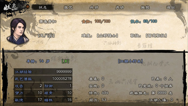 然后直接进平安镇,选择救善加五,选择不救恶加五,进入平安镇去武馆找到戚继光,学基础武功,这里潜能要省着点。