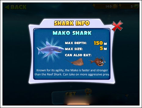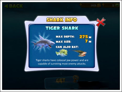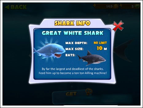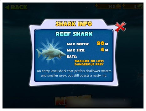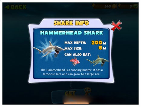 5、逐步解锁更多强力鲨鱼种类,包括灰鲭鲨、锤头鲨、虎鲨,直至无敌大白鲨,体验完整进化链。