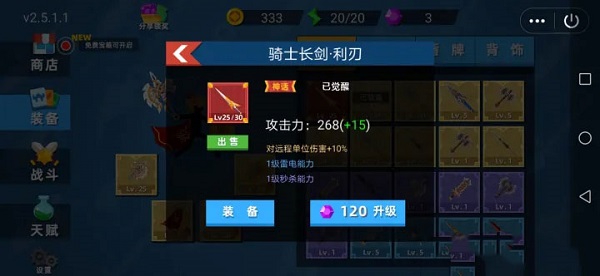 装备等级可通过金币逐步提升,若在获取时选择观看广告,还可直接升至5级,大幅提升初期战力。