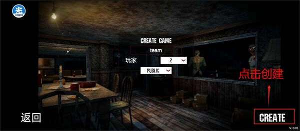 1、点击“CREATE GAME”选项,准备建立专属房间