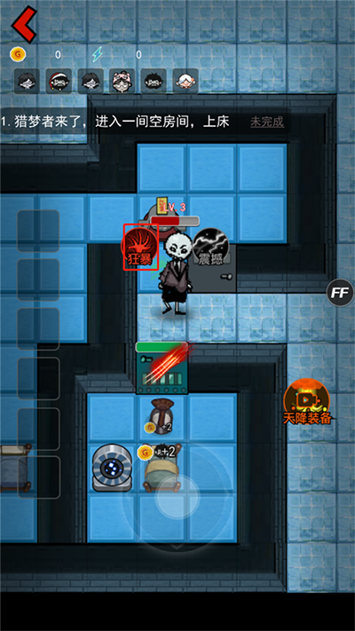 5、作为猎梦者,你的任务是破坏睡梦者的房门,当狂暴技能图标亮起时,及时点击释放,大幅提升攻击效率;