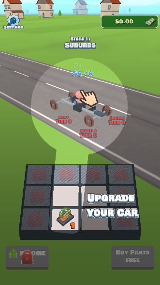 在这里,玩家可以通过点击屏幕来增加奖励,每次点击都可以获得一定的资源来获得全新的赛车配件。