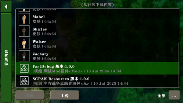 4、最后在管理内容这里可以看到当前拥有的模组。