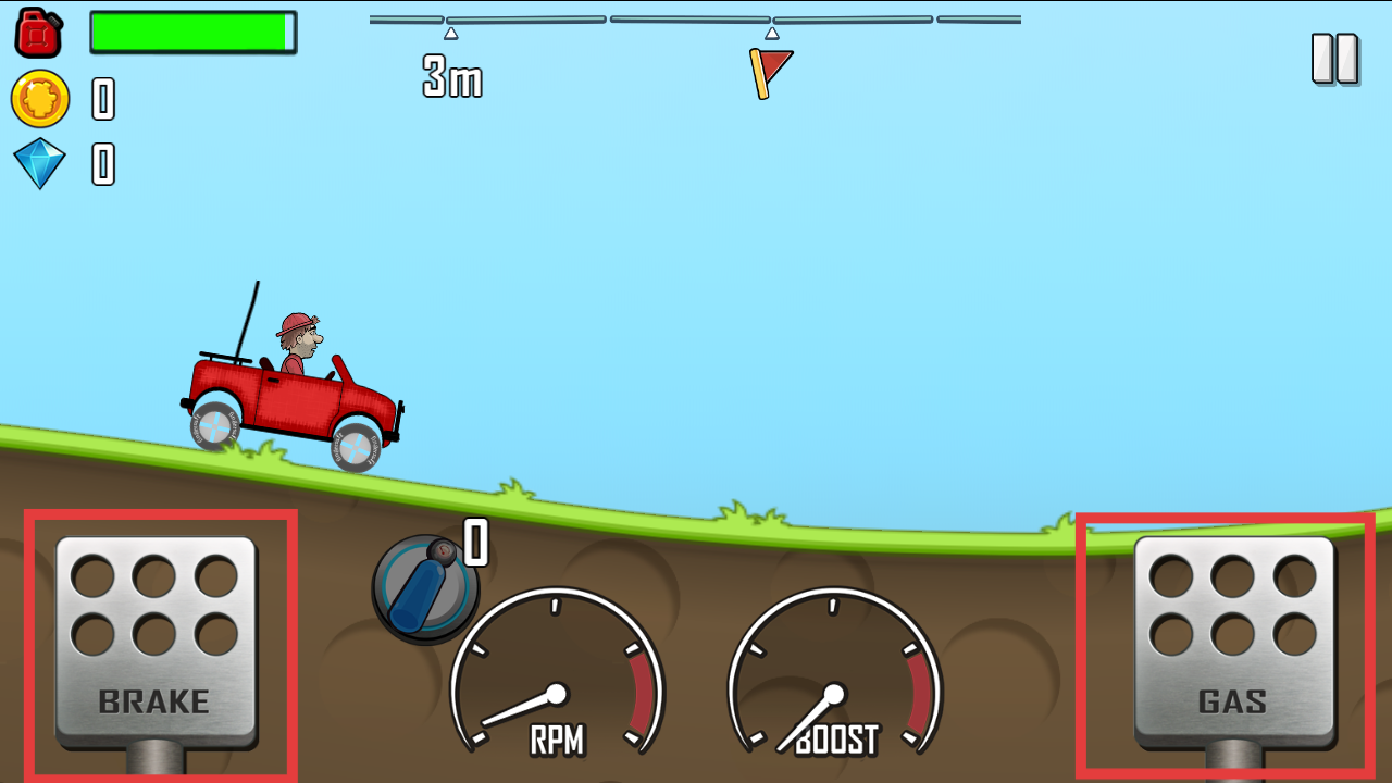 游戏操作比较简单,左边的是刹车按钮,右边的是油门按钮,在地面自然是油门加速、刹车减速。