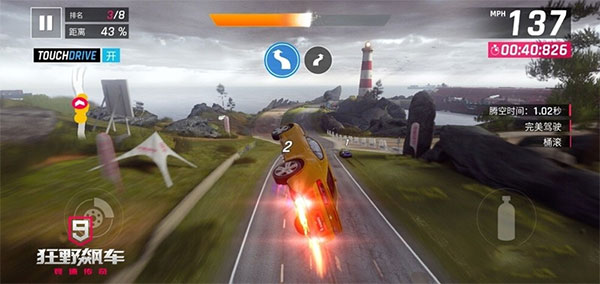 1、开启比赛后就会不断的向前冲,这时需要玩家进行漂移操作,按住“刹车键”就能进行漂移;