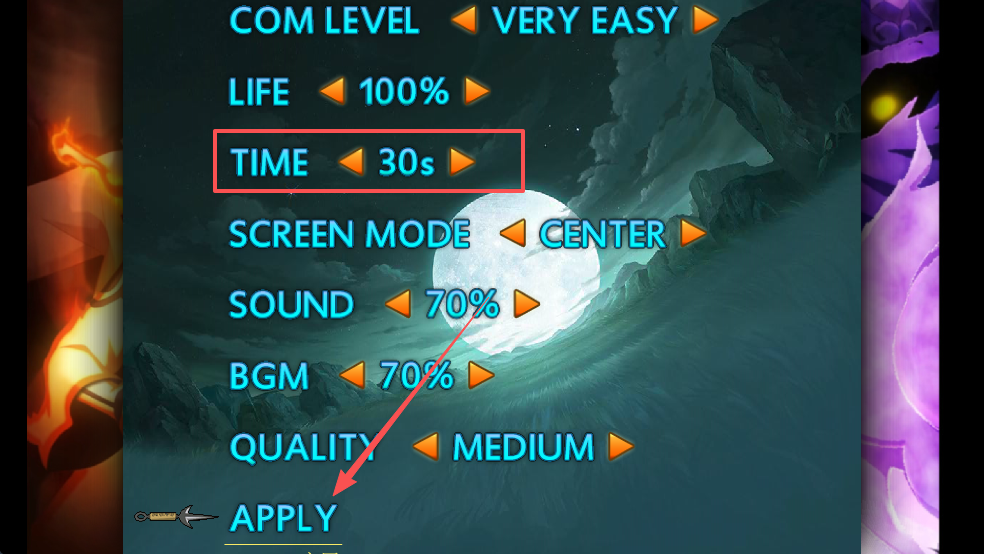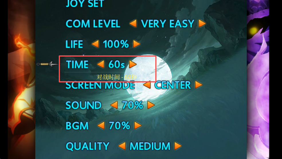 2、找到“Time”选项,此处可调整每回合的对战时间,默认为60秒