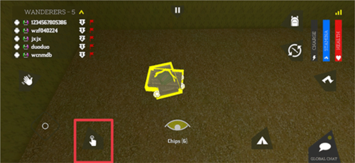 6、在游戏途中遇到道具后将屏幕中的眼睛对着物品后,点击左下角手指图标