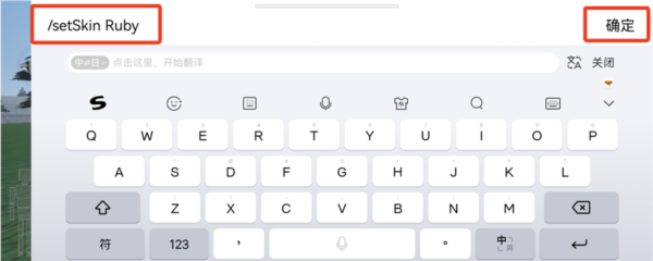 4、输入你需要的指令,这里输入的是枪械皮肤指令 /setSkin Ruby橙色,输入完成之后点击确定就行了。