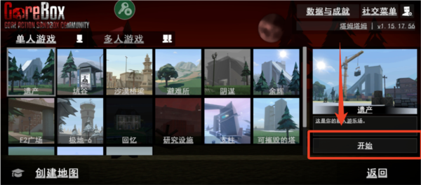 2、随意选择一个地图,多人或者单人的都可以,选好后点击右边图片下方的开始。
